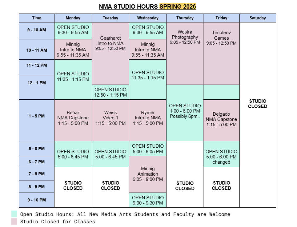 Reminder: The Studio is available when Baruch is open and classes are scheduled. Check the